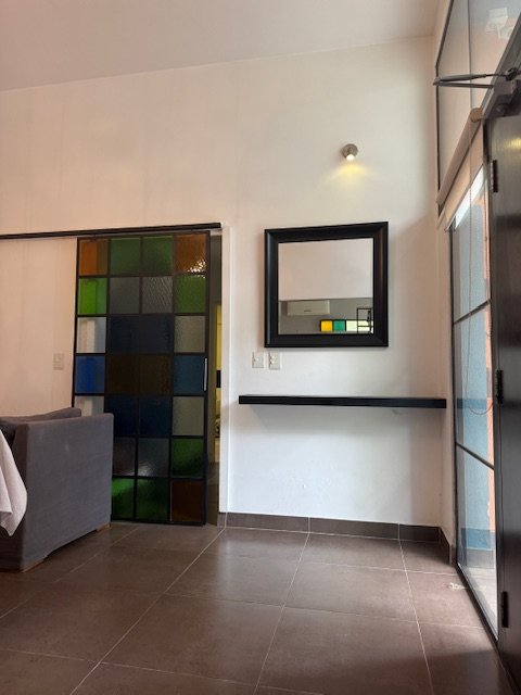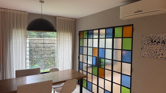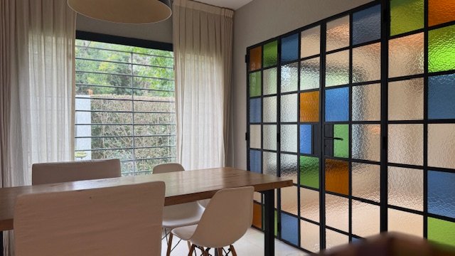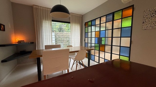 En planta baja cuenta con dos dormitorios, baño completo con mampara, elegantes cerramientos de hierro y vidrio símil vitreaux, amplia cocina comedor con mobiliario completo a medida, playroom y lavadero.